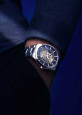 Рифленая заводная головка. Завинчивающаяся задняя крышка с прозрачным стеклом. Механизм с гравировкой в виде Cotes de Geneve (Женевские волны). Надежный стальной браслет с раскладывающейся застежкой.