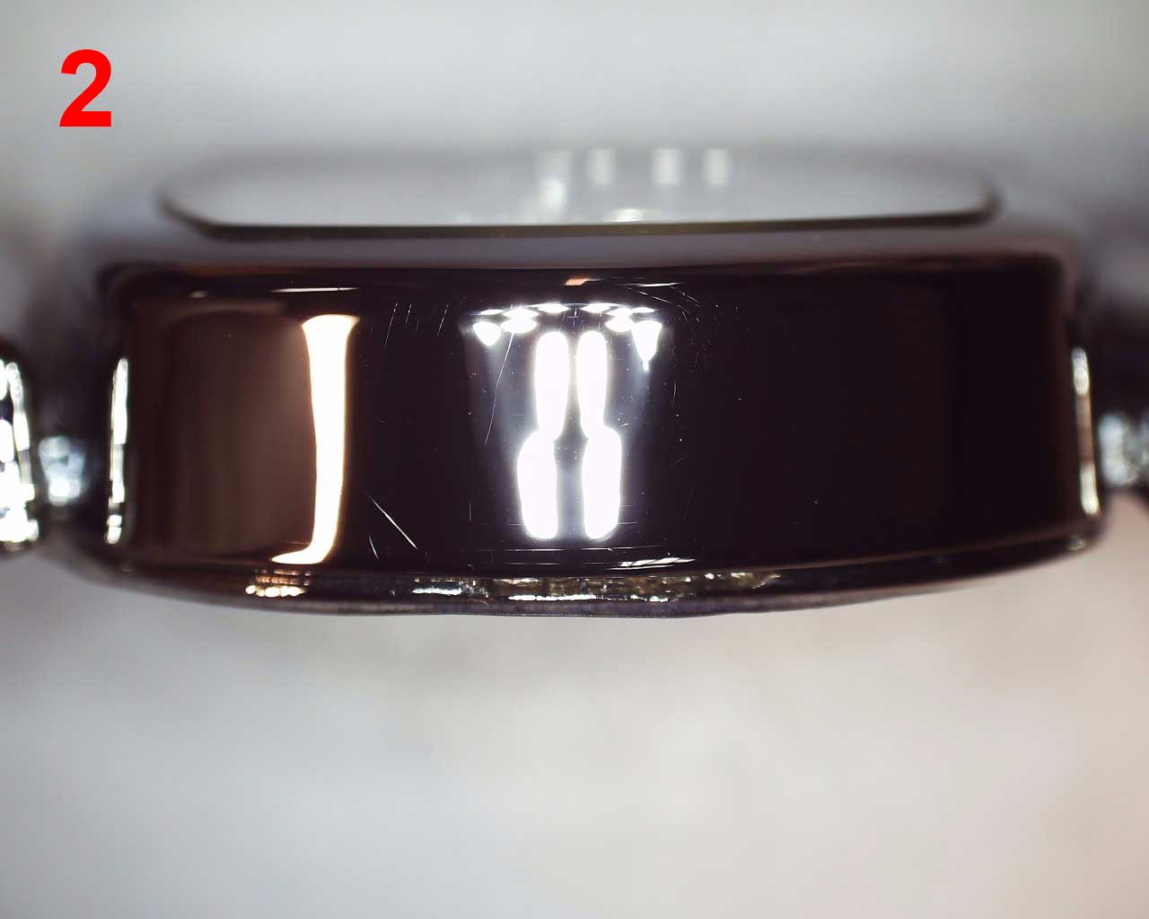 Женские часы с японским механизмом. Метки в виде штрихов. Рифленая заводная головка. Браслет миланского плетения.