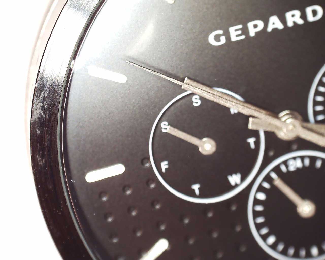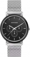 Мужские часы с японским механизмом Gepard. 12-ти и 24-х часовой формат времени. Время в 24-х часовом формате, дата и день недели вынесены на отдельные циферблаты. Метки в виде штрихов. Браслет миланского плетения.
