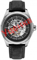 Скелетонизированные часы.Циферблат с метками в виде штрихов. Рифленая заводная головка. Кожаный ремешок с классической застежкой.