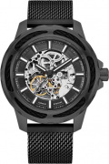 Скелетонизированные часы. Возможность ручного завода. Метки в виде штрихов. Безель украшен декоративным тросом. Рифленая заводная головка с защитой. Браслет миланского плетения с регулируемой застежкой.