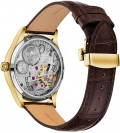 Циферблат с накладными метками в виде римских цифр защищен прочным сапфировым стеклом. Рифленая заводная головка. Прозрачная задняя крышка. Ремешок с раскладывающейся застежкой.