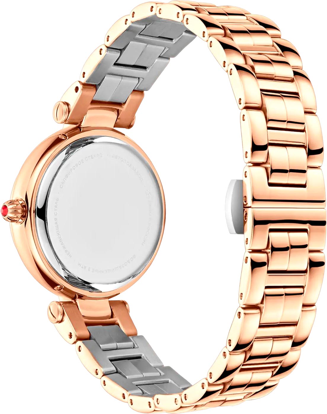 Метки в виде римских цифр. Стрелки в стиле Breguet. Окошко даты находится в положении 3 часа. Вытянутая рифленая заводная головка. Стальной браслет с раскладывающейся застежкой.