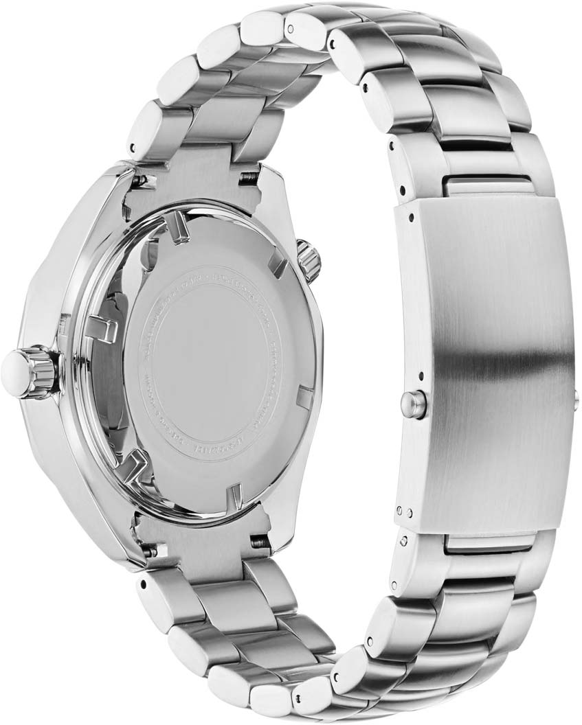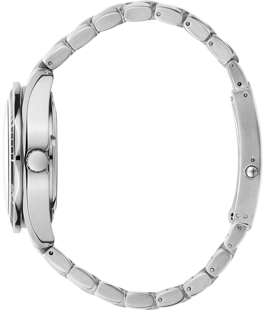 Окошко даты находится в положении 3 часа. Рифленая заводная головка. Завинчивающаяся стальная задняя крышка. Стальной браслет с раскладывающейся застежкой. Застежка с системой блокировки.