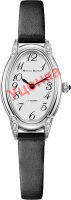 Женские часы. В механизме 17 камней. Циферблат с метками в виде арабских цифр. Рифленая заводная головка украшена камнем в форме кабошона. Ремешок с классической застежкой.