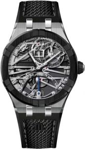Черный ремешок из двух видов резины с имитацией нейлоновой текстуры. Запатентованная система ML Easy Change позволяет снимать ремешок без применения специальных инструментов. Для этого необходимо сделать поворот в местах соединения центрального ряда звеньев с корпусом. Бренд Maurice Lacroix заботится об окружающей среде и изготавливает фирменную упаковку из океанического переработанного пластика.