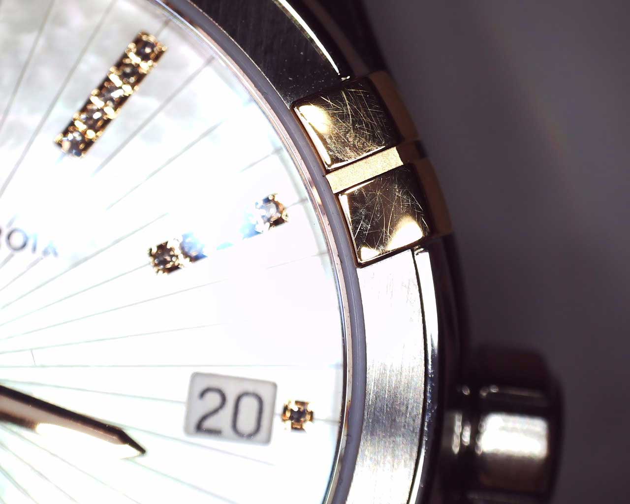 Aikon Quartz. Водонепроницаемые женские часы. Круглый стальной корпус с полированными и сатинированными поверхностями. Перламутровый циферблат выполнен по технологии Sunray (солнечные лучи) и украшен бриллиантами. Заостренные прямоугольные стрелки в стиле Baton с люминесцентным покрытием, которое светится в темноте после непродолжительной зарядки на свету. Метки в виде штрихов. Окошко даты находится в положении 3 часа. Граненая заводная головка. Надежный стальной браслет с застежкой-бабочкой. Система быстрой замены браслета. Бренд Maurice Lacroix заботится об окружающей среде и изготавливает фирменную упаковку из океанического переработанного пластика.