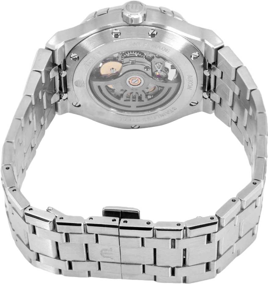 Граненая завинчивающаяся заводная головка. Прозрачная задняя крышка с сапфировым стеклом с антибликовым покрытием крепится на 7-ми винтах. Надежный стальной браслет с раскладывающейся застежкой. Система быстрой замены браслета. Бренд Maurice Lacroix заботится об окружающей среде и изготавливает фирменную упаковку из океанического переработанного пластика.
