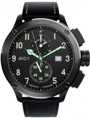 АЧС-1 5.0 Black Матовый. Часы-хронограф с секундомером. Полностью матовая отделка для всех элементов корпуса. Метки в виде арабских цифр. Счетчики на 30 минут и 12 часов. Окошко даты в положении на 3 часа. Кожаный ремешок с классической застежкой.