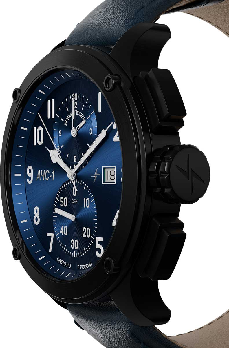 Часы-хронограф с секундомером. Счетчики на 30 минут и накопительный счетчик на 12 часов. Циферблат выполнен по технологии Sunray (солнечные лучи) и защищен прочным сапфировым стеклом толщиной 1,5мм.