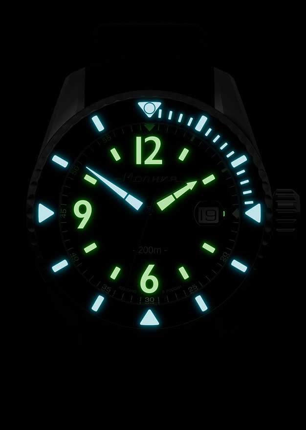 - люминесцентные стрелки и метки (SuperLuminova BGW9)