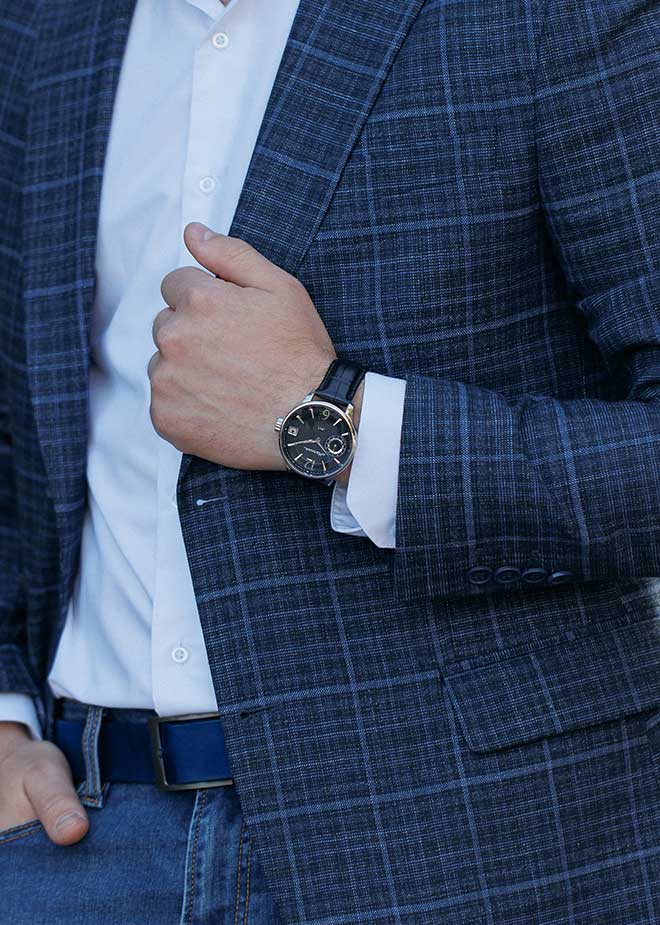 Циферблат защищен прочным сапфировым стеклом толщиной 2,6мм. Метки в виде штрихов и двух арабских цифр. Стрелки выполнены в стиле Dauphine. Окошко даты находится в положении 3 часа. Прозрачная задняя крышка. Кожаный ремешок с раскладывающейся застежкой и системой быстрой замены. Производитель оставляет за собой право вносить изменения во внешний вид часов. При заказе уточняйте у менеджера выбранный вариант.