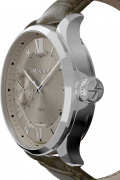 Двухуровневый циферблат с накладными метками в виде римских цифр защищен прочным сапфировым стеклом толщиной 2,5мм.