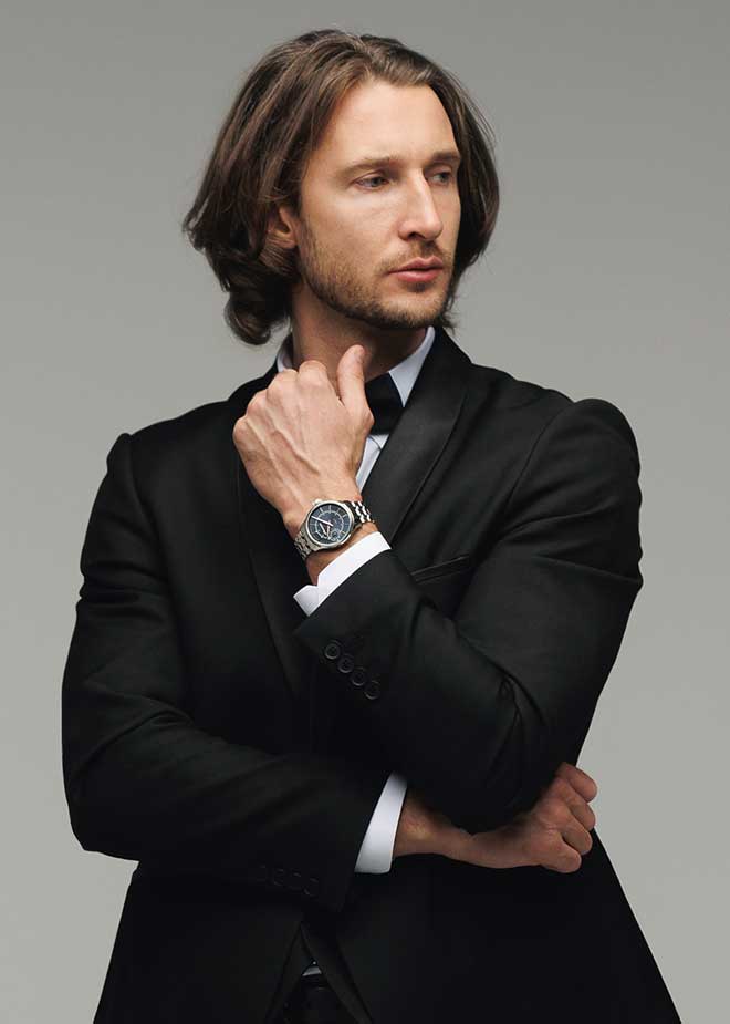 Циферблат с накладными метками в виде штрихов выполнен по технологии Sunray (солнечные лучи) и защищен прочным сапфировым стеклом толщиной 2мм.
