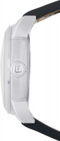 Круглый стальной корпус. Многоуровневый циферблат с метками в виде арабских цифр защищен прочным сапфировым стеклом. Окошко даты находится в положении 3 часа.