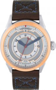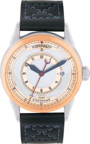 Завинчивающаяся заводная головка. Стальная задняя крышка украшена изображением парусника «Орел». Кожаный ремешок с классической застежкой и системой быстрой замены. В комплекте сменный ремешок.