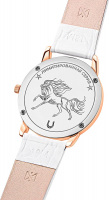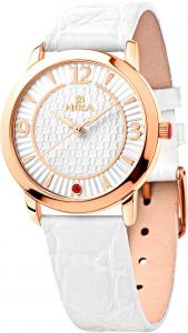 Накладные метки в виде арабских цифр, штрихов и точки, украшенной красным мульти-сапфиром. Острые стрелки в стиле Alpha. Минеральное стекло с сапфировым покрытием. Рифленая заводная головка. Удобный ремешок из натуральной кожи с классической застежкой.