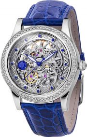 - корпус украшен 68 бриллиантами, циферблат украшен 12 сапфирами