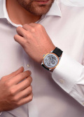 В механизме 24 камня, 21600 полуколебаний в час. Запас хода 41 час. Возможность ручного завода. Циферблат с матовым сатинированием защищен прочным минеральным стеклом с сапфировым напылением, которое обеспечивает защиту от царапин.