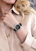Стрелки с люминесцентным покрытием, которое светится в темноте после непродолжительной зарядки на свету. Окошко даты находится в положении 6 часов. Рифленая заводная головка. Текстурный denim-ремень на кожаной основе с контрастной прострочкой. Классическая застежка из серебра 925 пробы.