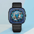 покрытием Super Luminova, которое светится в темноте после непродолжительной зарядки на свету. Заводная головка с защитой. Задняя крышка крепится на 4-х винтах и имеет прозрачное окошко, через которое можно наблюдать работу механизма часов. Ремешок с классической застежкой и системой быстрой замены.