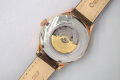 Сквозь прозрачное окошко на циферблате можно наблюдать работу механизма часов. Циферблат с метками в виде римских цифр. Завинчивающаяся задняя крышка с минеральным