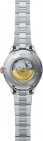 Сквозь прозрачное окошко на циферблате можно наблюдать работу механизма часов. Циферблат с метками в виде римских цифр. Завинчивающаяся задняя крышка с минеральным