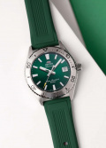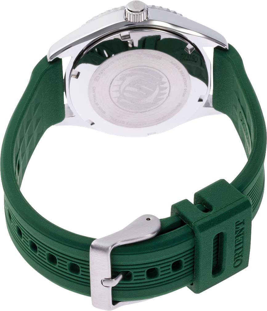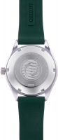 вращается на 120 щелчков в одном направлении. Окошко даты находится в положении 3 часа. Завинчивающиеся заводная головка и задняя крышка. Силиконовый ремешок с классической застежкой.