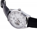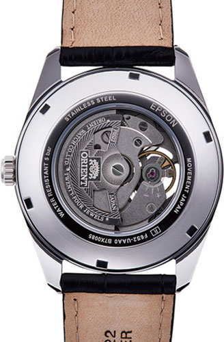 Сквозь прозрачное окошко на циферблате можно наблюдать за работой механизма часов. Секундная стрелка вынесена на отдельный циферблат. Прозрачная задняя крышка с минеральным