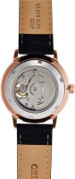 Циферблат с накладными метками в виде штрихов. Сквозь прозрачное окошко на циферблате можно наблюдать за работой механизма часов. Секундная стрелка вынесена на отдельный циферблат. Завинчивающаяся прозрачная задняя крышка. Рифленая заводная головка. Кожаный ремешок с классической застежкой.