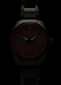 Круглый многокомпонентный корпус из титана. Метки в виде штрихов. Окошко даты находится в положении 6 часов. Люминесцентное покрытие стрелок и меток позволит следить за временем даже в полной темноте.
