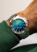 Многокомпонентный корпус из нержавеющей стали. Безель из вольфрама с минутной шкалой. Градиентный синий циферблат с метками в виде штрихов. Люминесцентное покрытие стрелок и меток позволит следить за временем даже в полной темноте.