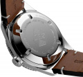 Рифленая заводная головка. Завинчивающаяся стальная задняя крышка украшена гравировкой. Кожаный ремешок с классической застежкой.