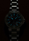 Метки в виде штрихов. Окошко даты находится в положении 6 часов. Люминесцентное покрытие стрелок и меток позволит вам следить за временем даже в полной темноте. Завинчивающаяся рифленая заводная головка с защитой. Завинчивающаяся прозрачная задняя крышка с минеральным стеклом. Браслет с раскладывающейся застежкой.