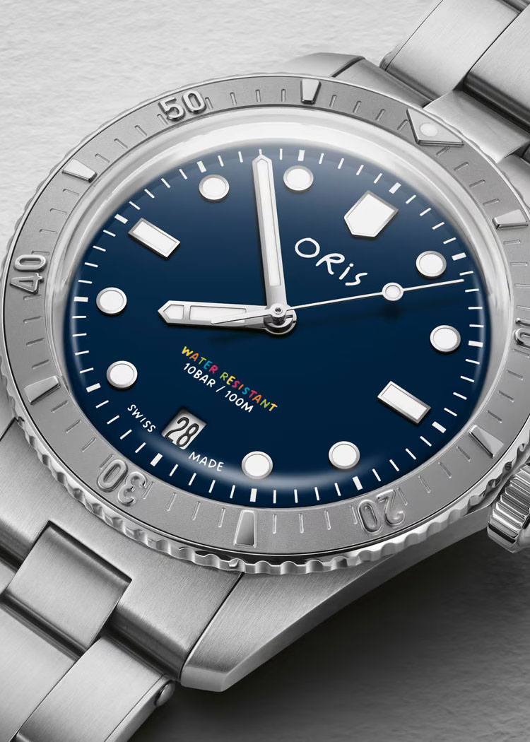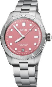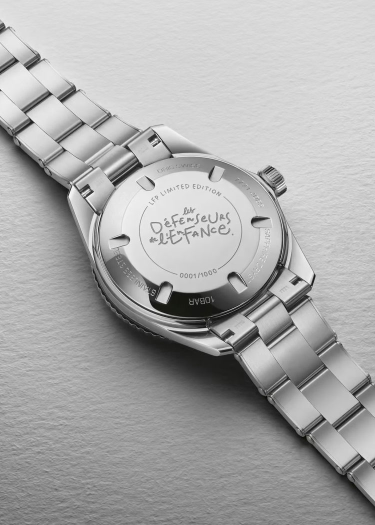 Завинчивающаяся задняя крышка украшена гравировкой. Завинчивающаяся рифленая заводная головка. Стальной браслет с раскладывающейся застежкой.
