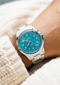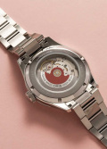 Циферблат с метками в виде арабских цифр. Дата отображается центральной стрелкой – исторически сложившийся дизайн. Завинчивающаяся прозрачная задняя крышка. Браслет с раскладывающейся застежкой.