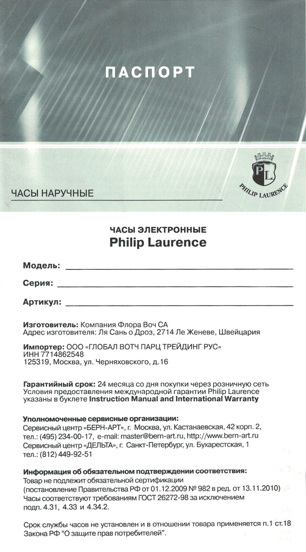 Фото «Швейцарские механические наручные часы Philip Laurence PH22012-03K»