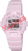 Электронные женские часы. Метки на дисплее в виде арабских цифр. Функции даты, будильника, секундомера, 12/24 часовой формат времени. Полиуретановый браслет.