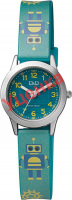 Casual Kids. Круглый металлический корпус. Индексы в виде арабских цифр. Ремешок украшен рисунком робота. Яркие цвета.