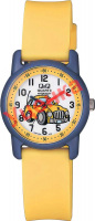 Яркие детские часы Casual Kids. Круглый прочный полиуретановый корпус. Высокая водостойкость. Разноцветные стрелки. Метки в виде арабских цифр. Рисунок машинки на циферблате. Рифленая заводная головка. Полиуретановый ремешок с классической застежкой.