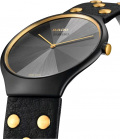 Сапфировое стекло с мозаичной огранкой, благодаря которой достигается уникальная игра света с отражением, поглощением и преломлением лучей. Гладкая заводная головка. Удобный кожаный ремешок со стальными заклепками. Раскладывающаяся застежка.