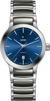Рифленая заводная головка. Прозрачная задняя крышка. Надежный стальной браслет со вставками из черной керамики. Раскладывающаяся застежка. Имеется мужской вариант модели R30010202.