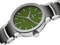 Рифленая заводная головка. Прозрачная задняя крышка. Надежный стальной браслет со вставками из черной керамики. Раскладывающаяся застежка. Имеется мужской вариант модели R30010312.