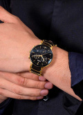 Окошко даты находится в положении 4 часа. Изогнутое сапфировое стекло с двусторонним антибликовым покрытием. Рифленая заводная головка. Надежный стальной браслет с керамическими вставками. Раскладывающаяся застежка.