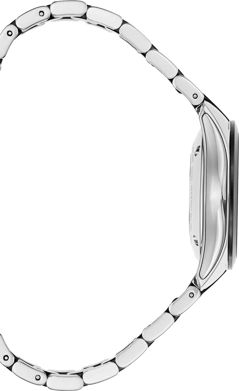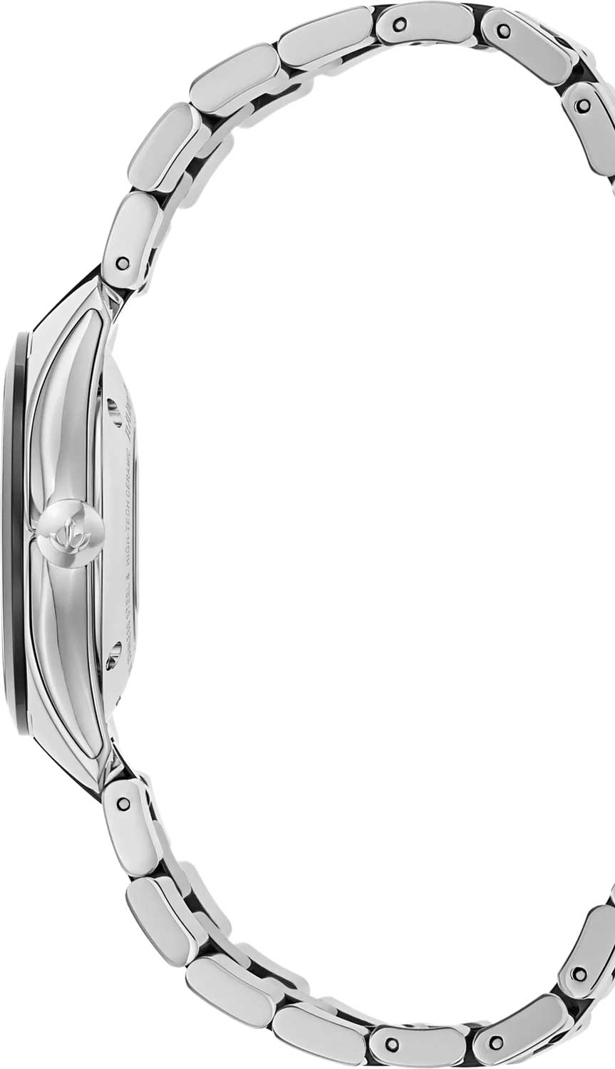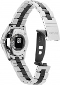 Стрелки с люминесцентным покрытием, которое светится в темноте после непродолжительной зарядки на свету. Рифленая заводная головка. Прозрачная задняя крышка крепится на 4 винтах. Надежный стальной браслет с керамическими вставками и раскладывающейся титановой застежкой.