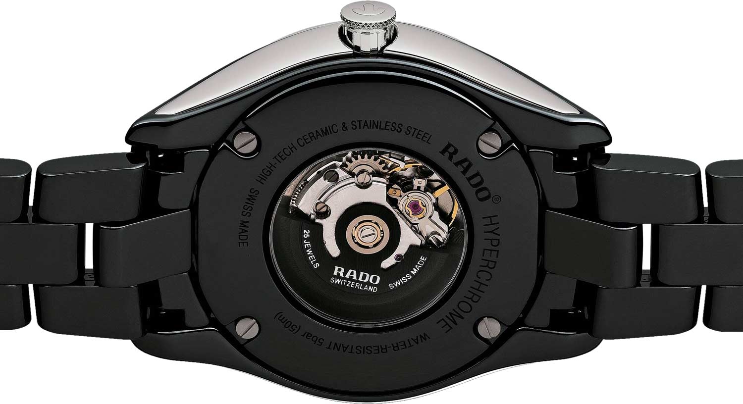 Окошко даты находится в положении 3 часа. Рифленая заводная головка. Прозрачная задняя крышка крепится на 4 винтах. Надежный керамический браслет с раскладывающейся застежкой.