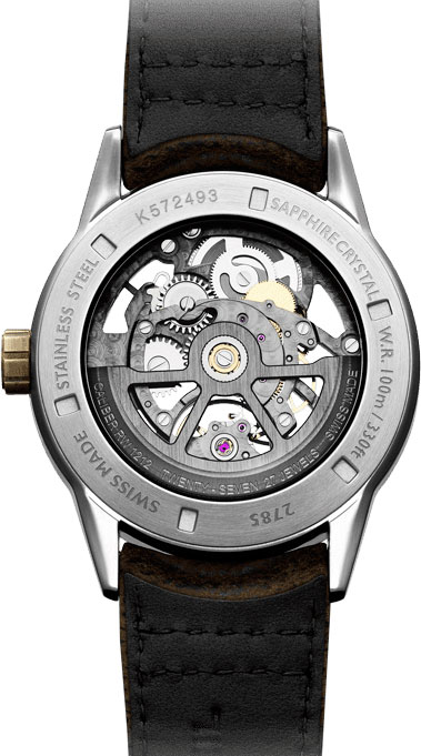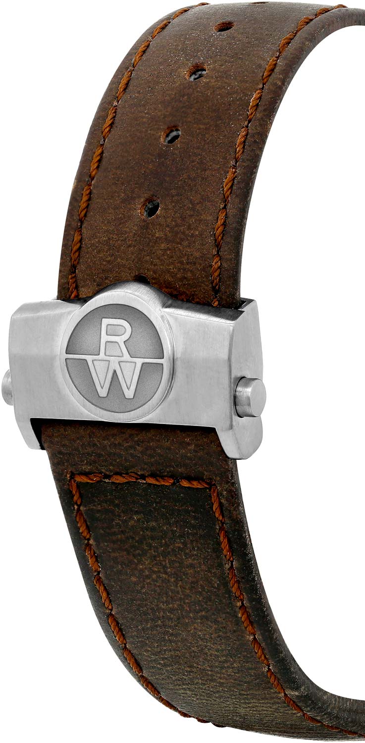Запас хода 41 час. Бронзовый безель. Завинчивающаяся заводная головка с логотипом RW. Прозрачная завинчивающаяся сапфировая задняя крышка. Ремешок с раскладывающейся застежкой. Застежка с двойной системой защиты.