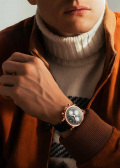 Прозрачная задняя крышка с сапфировым стеклом. Рифленая заводная головка с логотипом RW. Удобный кожаный ремешок с классической застежкой.