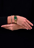Прямоугольные стрелки в стиле Baton с люминесцентным покрытием, которое светится в темноте после непродолжительной зарядки на свету. Рифленая заводная головка. Надежный стальной браслет матовой и полированной отделки с раскладывающейся застежкой. В комплекте теннисный стальной браслет, украшенный кристаллами.