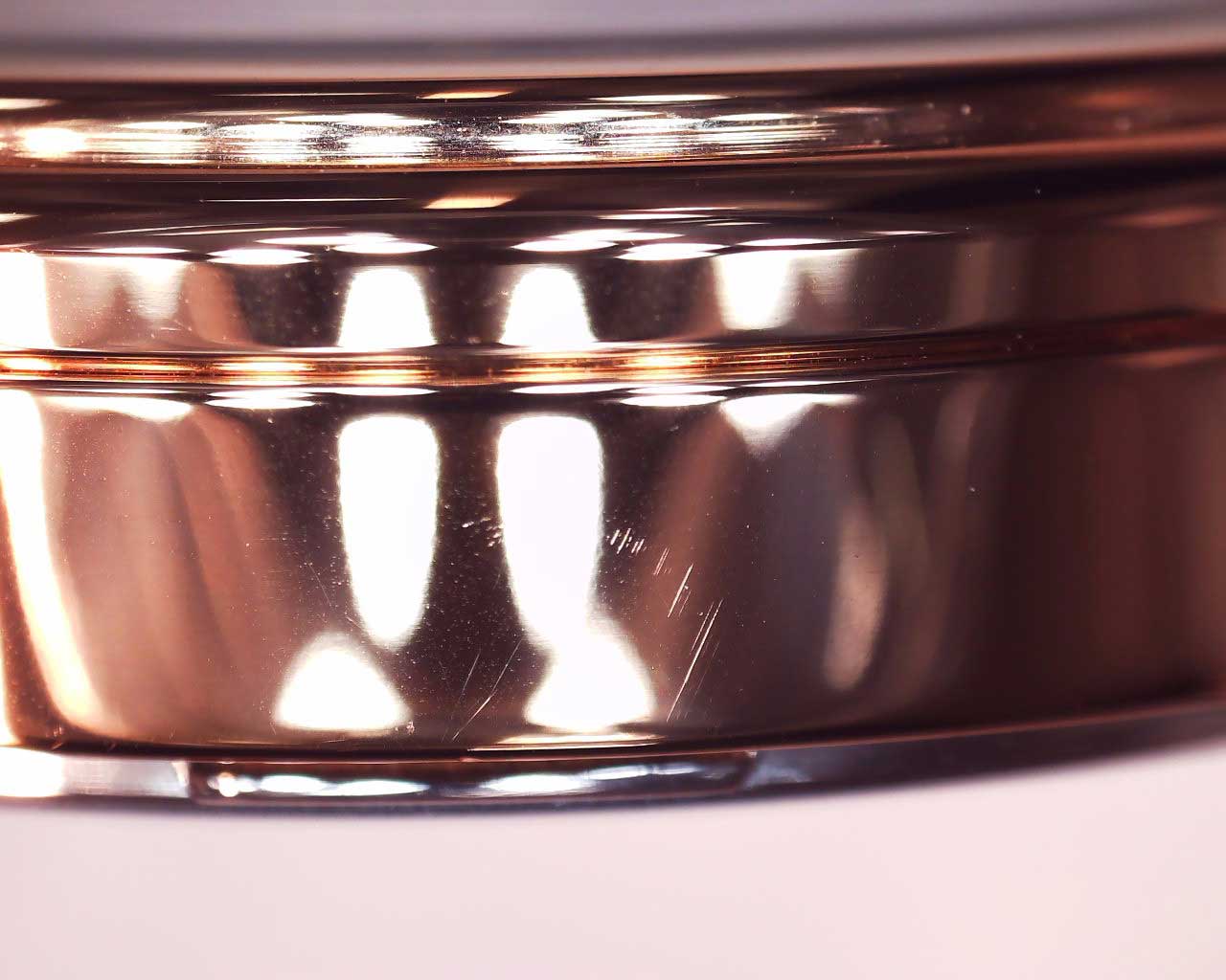 Женские кварцевые часы Le Bordeaux. Круглый стальной корпус с розовым IP покрытием. Перламутровый в зоне меток и гильошированный по центру циферблат с логотипом бренда декорирован россыпью из шестнадцати кристаллов. Метки в виде штрихов. Рифленая заводная головка. Надежный стальной браслет с розовым IP покрытием и застежкой-бабочкой.